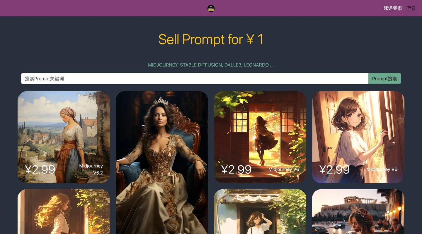 也许是国内最原创设计、具备游戏性质的Midjourney提示词交易网站。