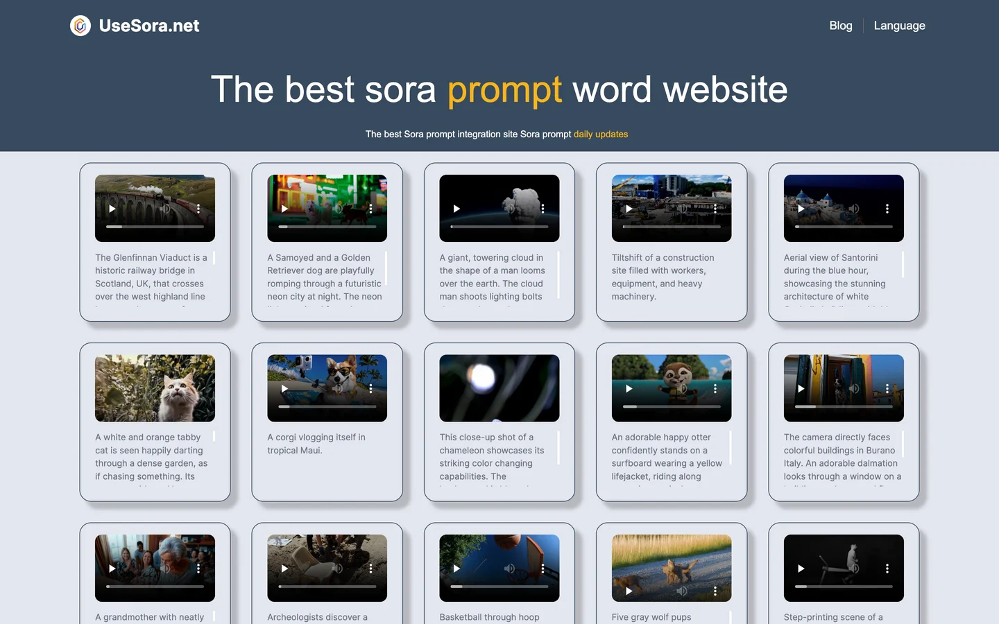 最好的 Sora 提示集成网站 Sora 提示每日更新。