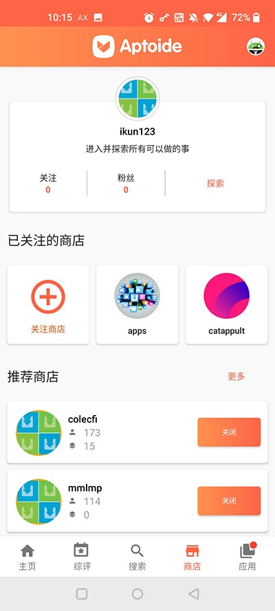 1、首先在当快站安装好aptoide应用商店app后,进入到主页面可以关联自己的邮箱账号等。