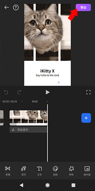 6、编辑完毕之后,点击右上角的“导出”,即可导出视频文件。