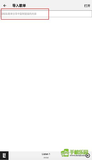 3、复制好要导入的歌单链接,歌单链接一般在歌单的分享功能里可以找到,最后粘贴到框框里,点击打开即可导入成功