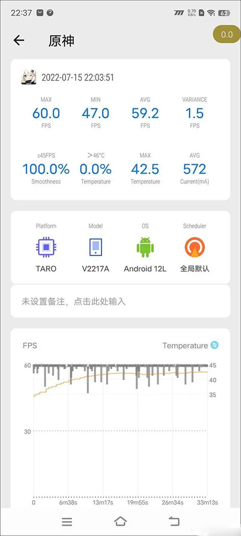 4、在弹出的界面就能够看到完整的帧率显示图了。