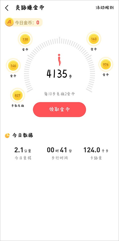3、点击上方的“边走边赚”,可以把每天的步数兑换成金币;