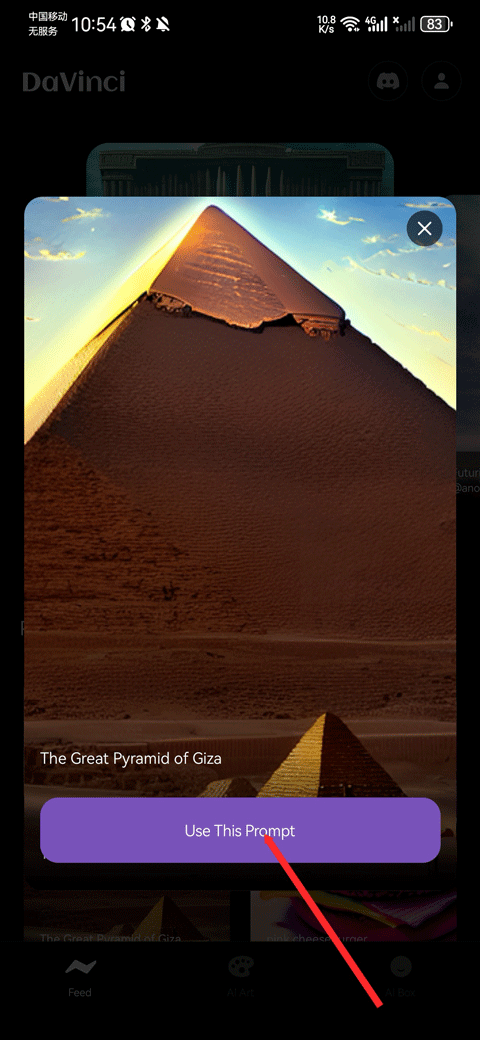 如果您使用达芬奇强大的人工智能艺术生成器创作了自己喜欢的东西,您可以直接将您的杰作从应用程序分享到其他平台