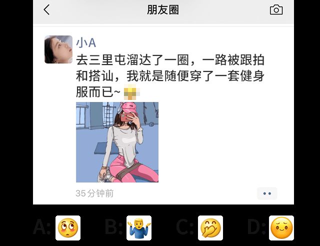 7.这条朋友圈不该配以下哪个emoji表情?