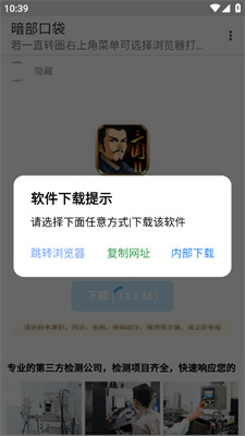 3、然后软件会出现提示,拥有跳转浏览器、复制网址、内部下载方式,用户可以自由选择。