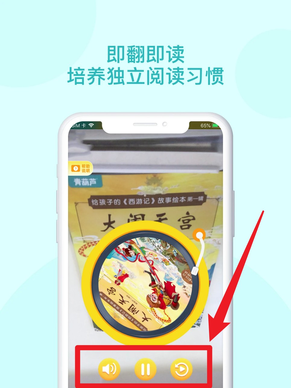 3. 页面下方控制按钮可执行播放、暂停、重播操作,适合孩子自主点读使用。