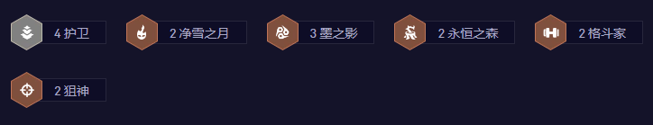 4护卫、2净雪之月、3墨之影、2永恒之森、2格斗家、2狙神