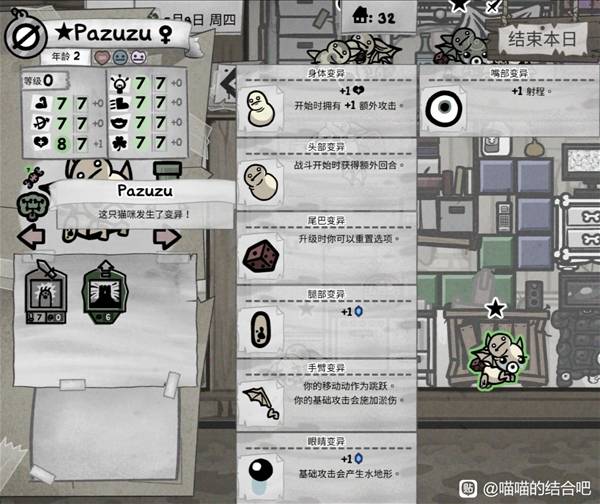 阁楼用于放战斗猫和等着变异堆变异度和舒适度。