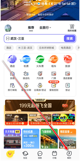 打开飞猪旅行,点击右下角【我的】。